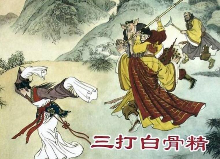 《孙悟空三打白骨精》这一章节中写道,唐僧师徒四人来到了山高林深的白虎岭,孙悟空化斋去了,山上的妖怪白骨精变成一位年轻貌美的女子,假装送斋饭乘机把唐僧抓走,这时正好悟空一个筋斗翻了回来,睁开火眼金睛一看,认出女子是个妖怪,举起金箍棒就打,白骨精见有事不妙,化作一缕青烟逃走了。