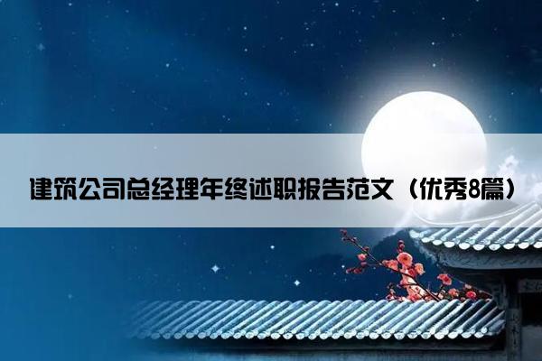 随着个人的文明素养不断提升,报告的用途越来越大,我们在写报告的时候要注意涵盖报告的基本要素。在写之前,可以先参考范文,以下是小编精心整理的建筑公司总经理年终述职报告范文(通用8篇),欢迎阅读,希望大家能够喜欢。